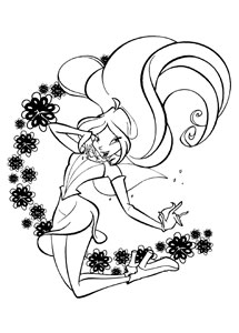 Вторая часть раскрасок Флоры из Winx Club. Когда раскрашиваете, не забывайте, что у Флоры волосы карамельного цвета, цвет глаз зелёный и лёгкий загар тела.![]()